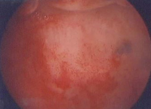 慢性子宮内膜炎の場合、子宮内腔の発赤、粘膜のむくみ、多数の小ポリープが見られたりします。