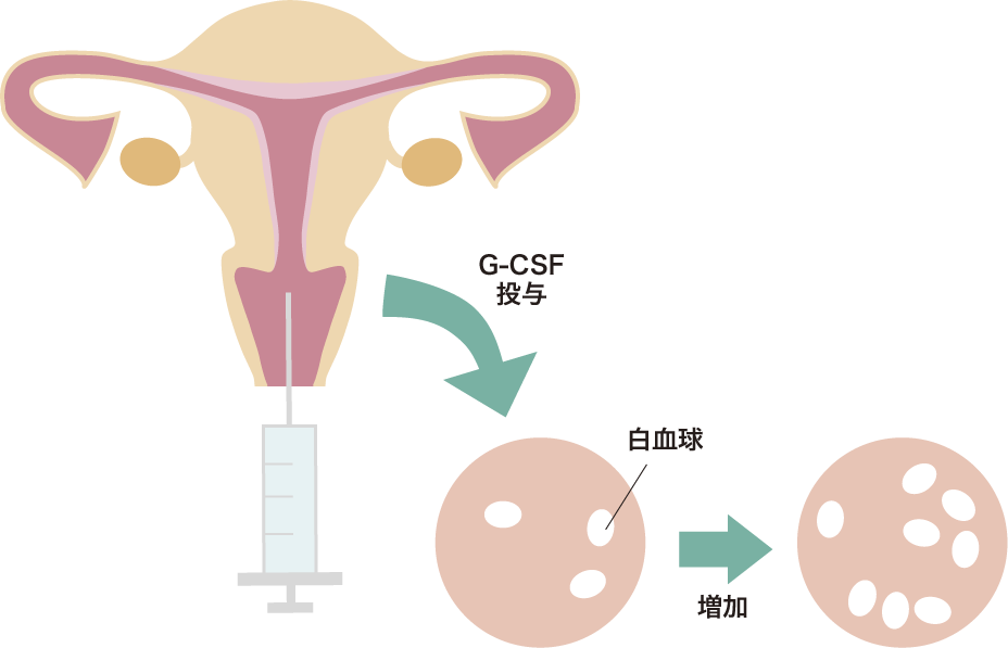 投与により菲薄化している子宮内膜を厚くなるといわれています。また子宮内膜が厚くならなくてもG-CSFを投与することにより着床率が改善します。